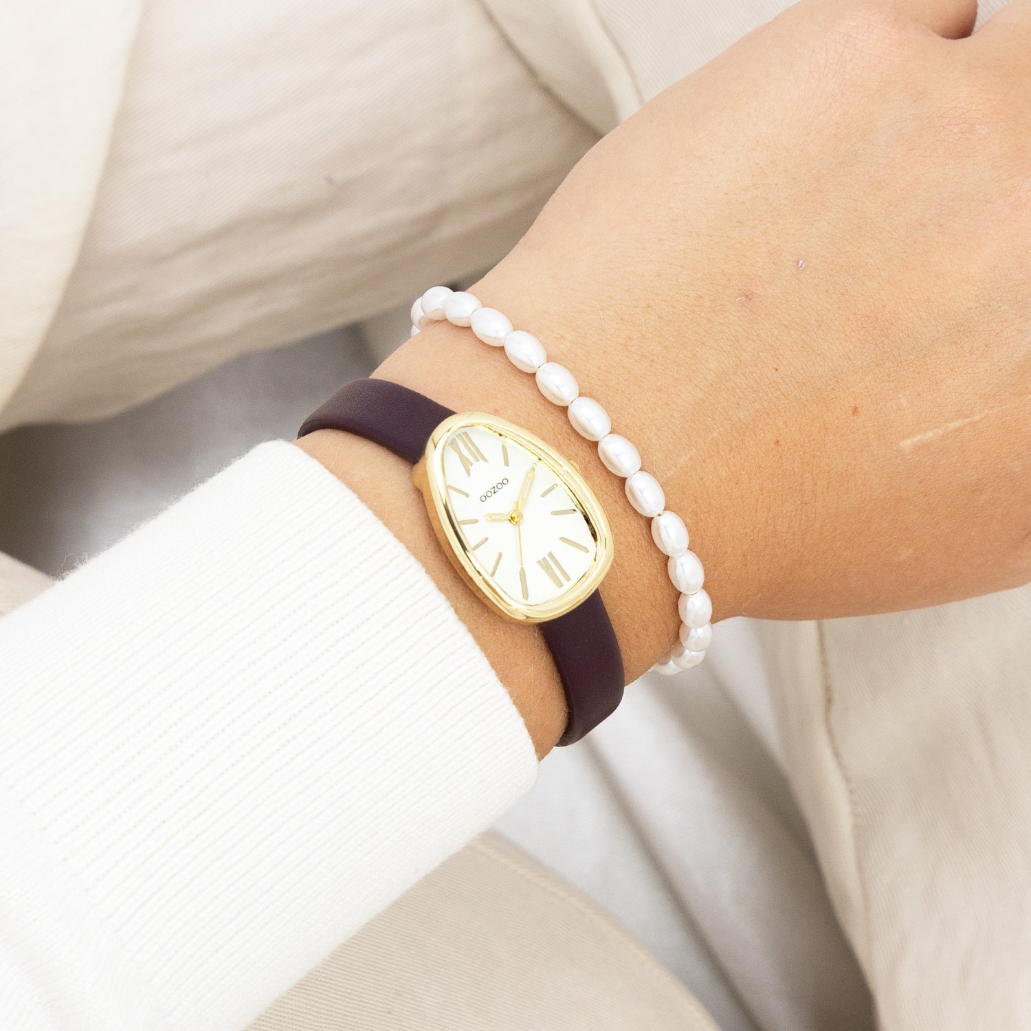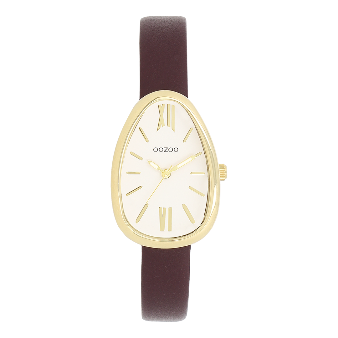 Gold coloured OOZOO watch with fig red leather strap - C11635