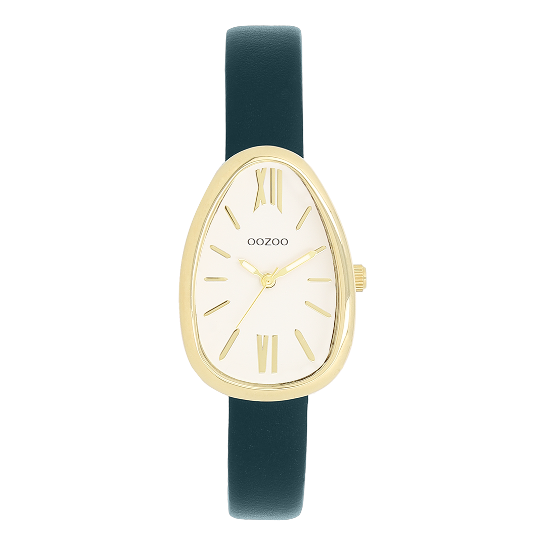 Stand out with this beautiful egg-shape ladies design from the trendy OOZOO Timepieces collection. The C11636 has a dark green leather strap and 31x22 mm gold coloured metal watch case. You are making quite the fashion statement with this white dial, gold coloured stripes and Roman numerals digits and matching hands. This essential watch for your wardrobe has a mineral glass, stainless steel backplate and is nickel safe. This watch has a 2ATM Japanese movement and is covered by a 2 year warranty (see section 3 of our Refund, shipping & warranty policy).