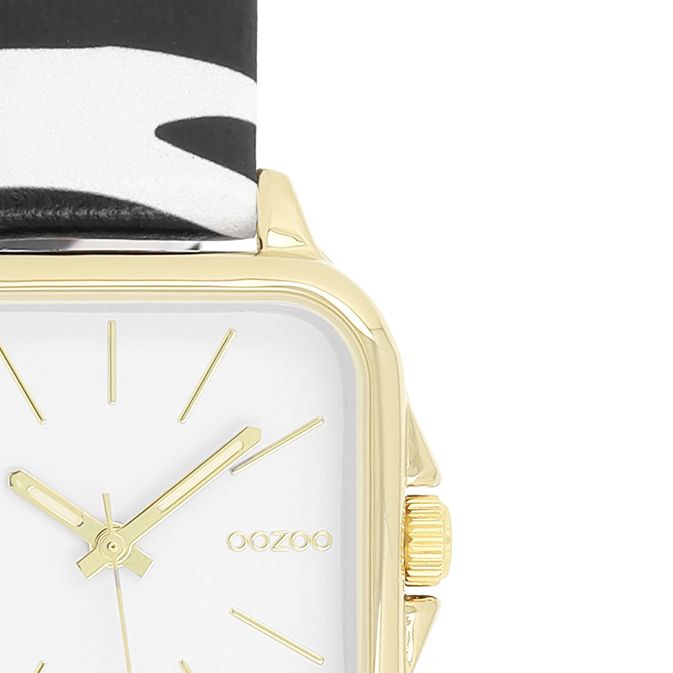 Gold coloured OOZOO watch with black/white leather strap - C11610