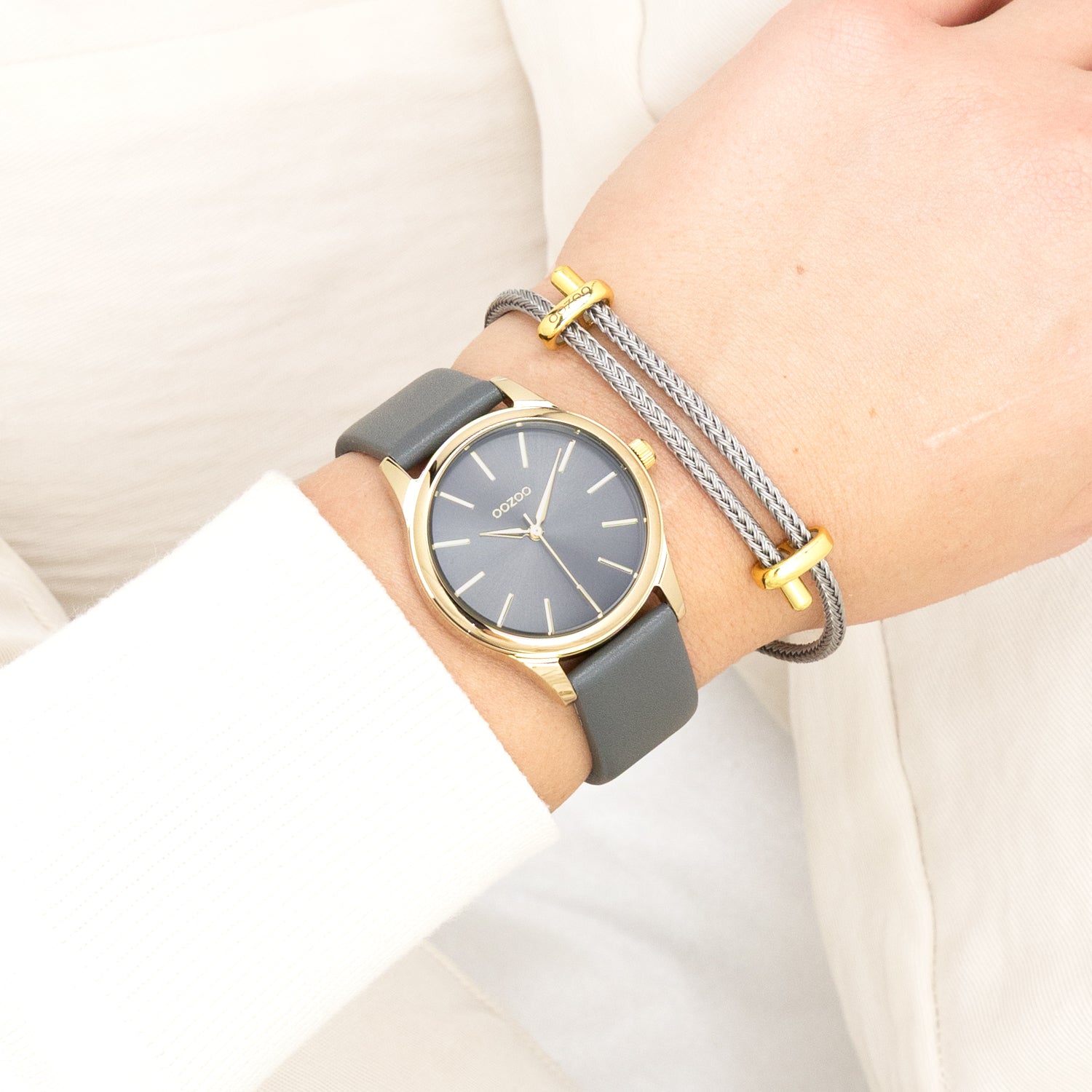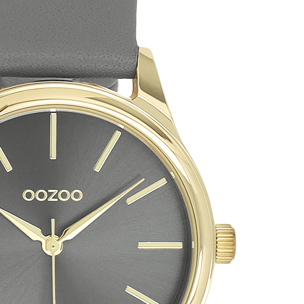 Gold coloured OOZOO watch with dark grey leather strap - C11679