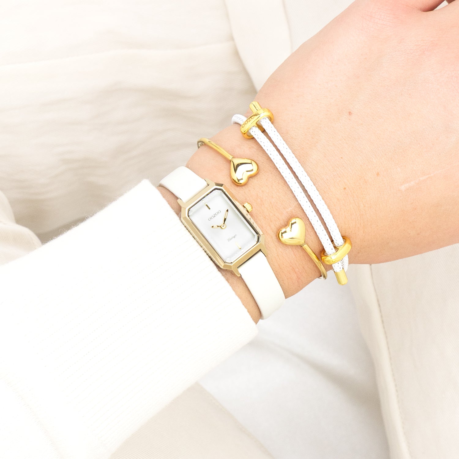 The classic look stays key in this trendy series and therefore, this rectangular OOZOO vintage design with a playful wink is the season must-have! This ladies watch is the perfect combination of fashion and comfort with its 22x19 mm gold coloured metal watch case and light grey circle pattern dial. The light grey leather strap makes this watch a trendy accessory, which you can wear every day. The dial has gold coloured stripes digits and matching hands. The C20451 adds the sparkle to your outfit. The mineral glass lays in a 9,5 mm slim metal watch case with IP-plating. This design has a stainless steel backplate and is nickel safe. This watch has a 2ATM Japanese movement and is covered by a 2 year warranty (see section 3 of our Refund, shipping & warranty policy).