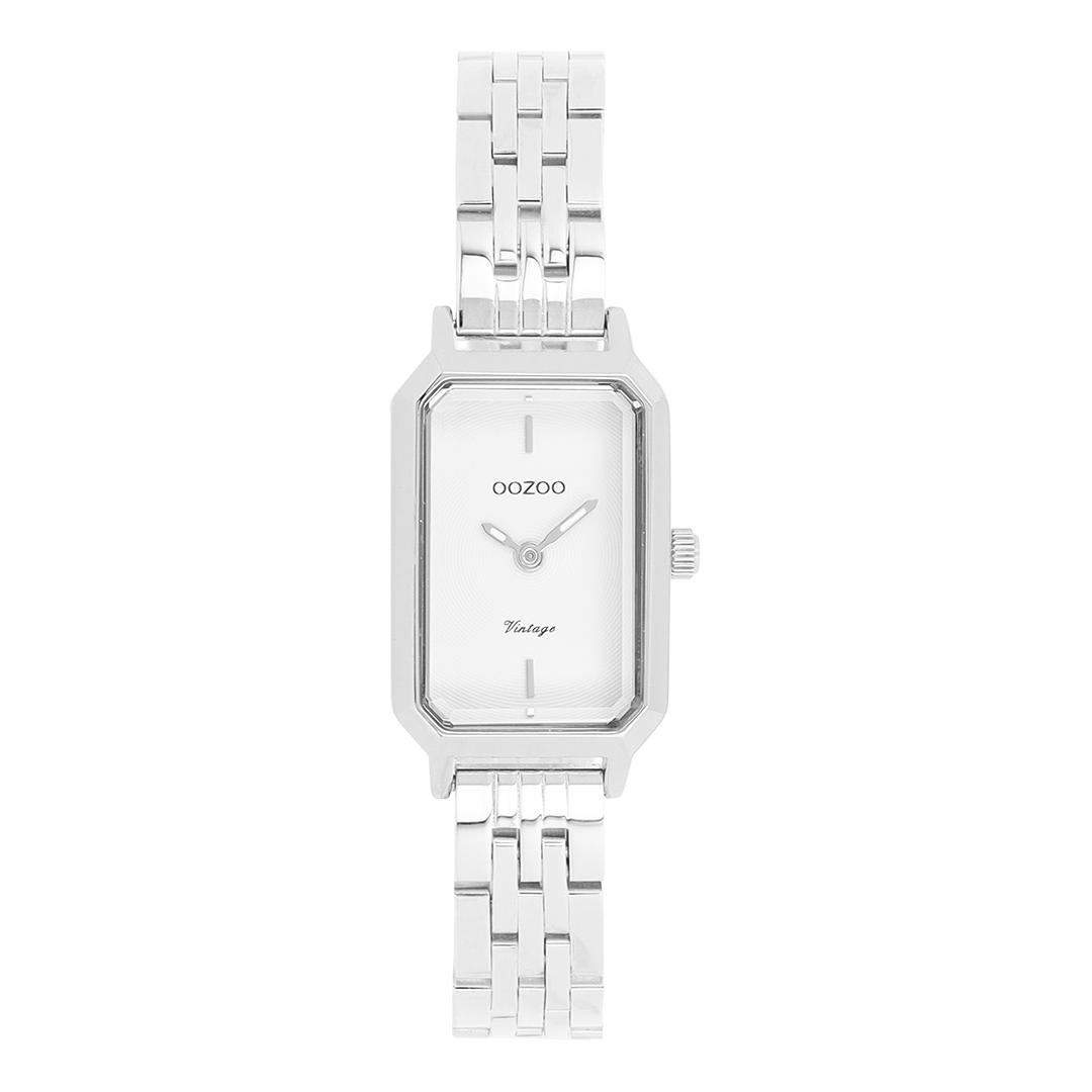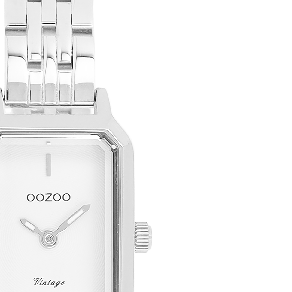 The classic look stays key in this trendy series and therefore, this rectangle OOZOO vintage design with a playful wink is the season must-have! This ladies watch is the perfect combination of fashion and comfort with its 22x19 mm silver coloured metal watch case and white dial. The shiny silver coloured stainless steel bracelet makes this watch a trendy accessory, which you can wear every day. The dial has silver coloured stripes digits and matching hands. The C20423 adds the sparkle to your outfit. The mineral glass lays in a mm slim metal watch case with IP-plating. This design has a stainless steel backplate and is nickel safe. This watch has a 2ATM Japanese movement and is covered by a 2 year warranty (see section 3 of our Refund, shipping & warranty policy).