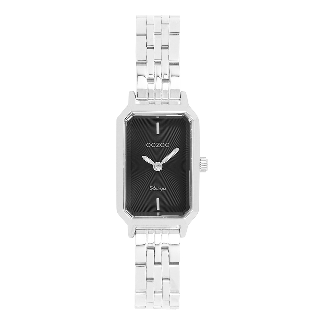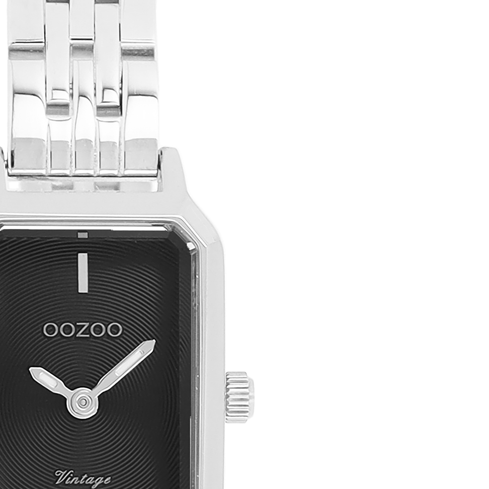The classic look stays key in this trendy series and therefore, this rectangle OOZOO vintage design with a playful wink is the season must-have! This ladies watch is the perfect combination of fashion and comfort with its 22x19 mm silver coloured metal watch case and black sunray dial. The shiny silver coloured stainless steel bracelet makes this watch a trendy accessory, which you can wear every day. The dial has silver coloured stripes digits and matching hands. The C20424 adds the sparkle to your outfit. The mineral glass lays in a mm slim metal watch case with IP-plating. This design has a stainless steel backplate and is nickel safe. This watch has a 2ATM Japanese movement and is covered by a 2 year warranty (see section 3 of our Refund, shipping & warranty policy).