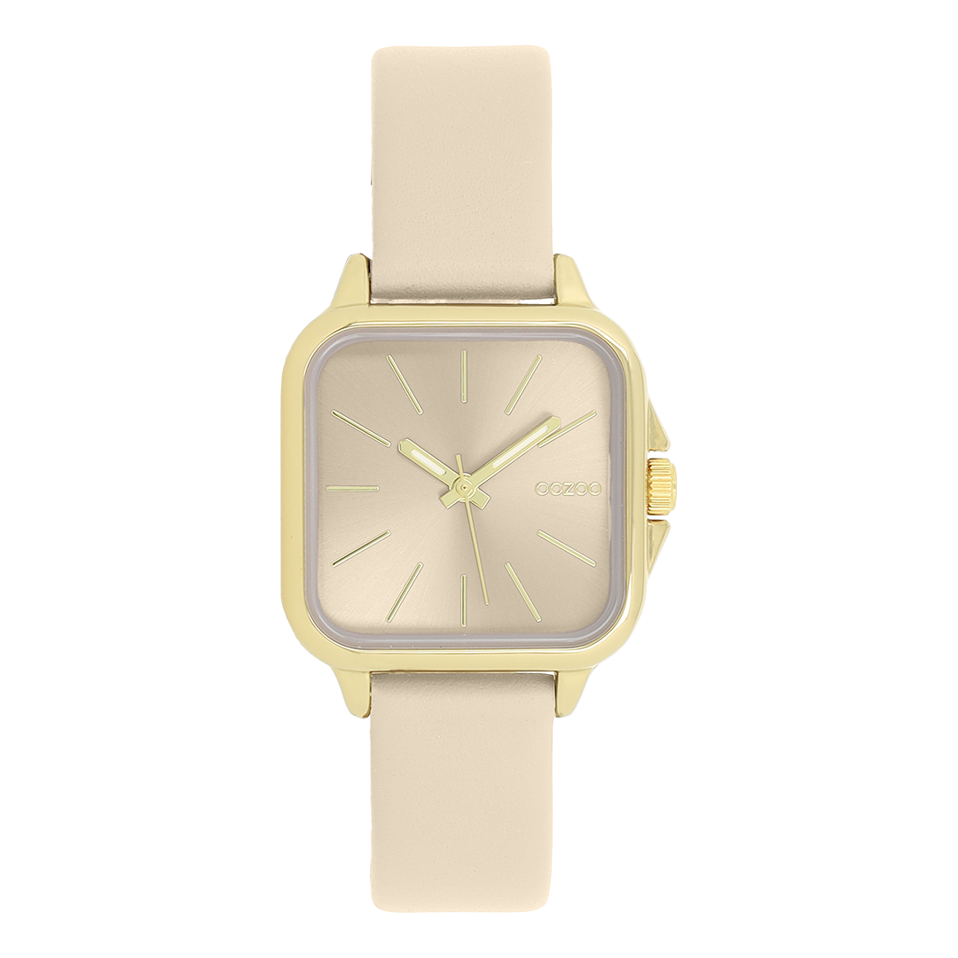 Gold coloured OOZOO watch with sand leather strap - C11666