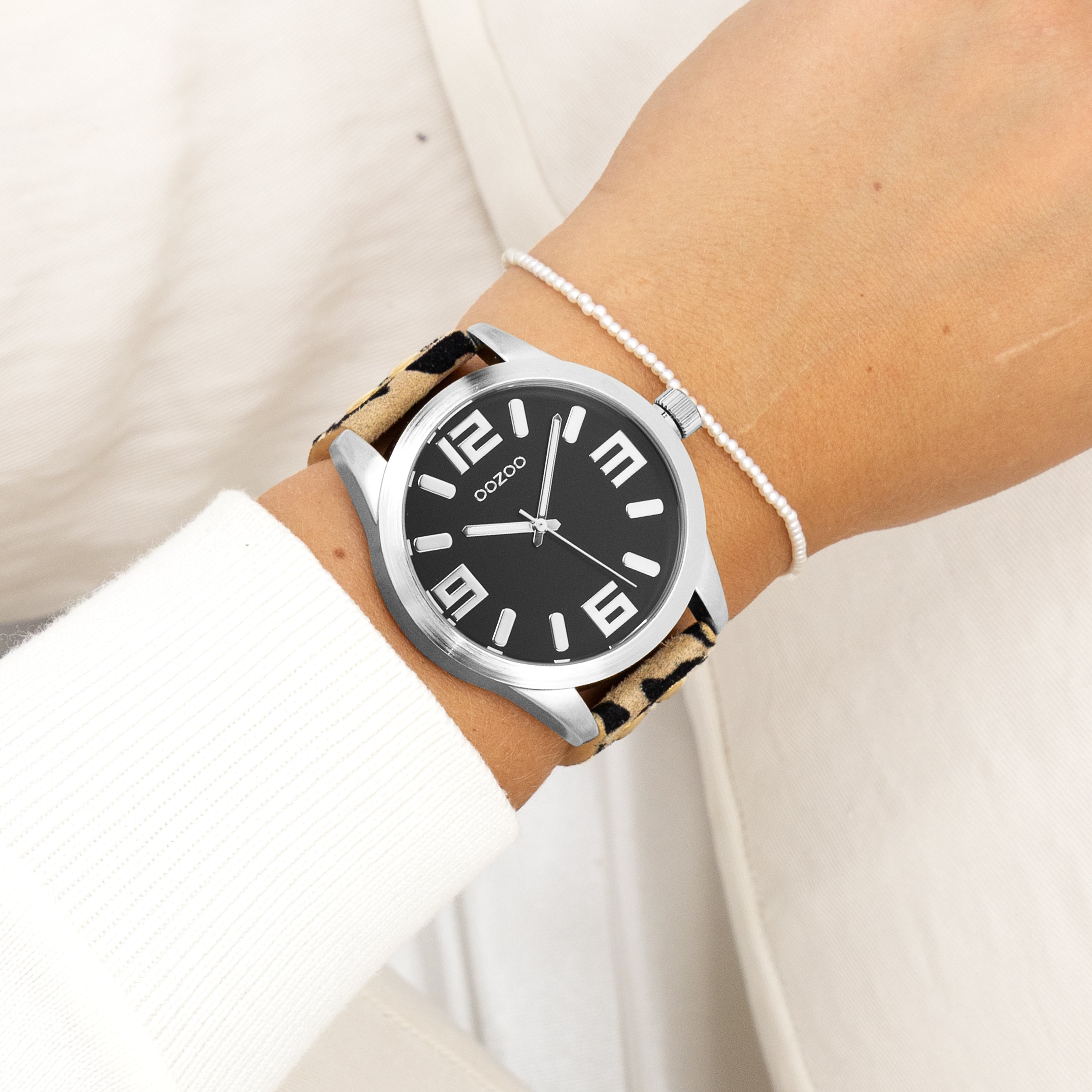 Stand out with this beautiful round ladies design from the trendy OOZOO Timepieces collection. The C0901 has a leopard print brown leather strap and 46 mm silver coloured metal watch case. You are making quite the fashion statement with this black dial, silver coloured stripes and numbers digits and matching hands. This essential watch for your wardrobe has a mineral glass, stainless steel backplate and is nickel safe. This watch has a 2ATM Japanese movement and is covered by a 2 year warranty (see section 3 of our Refund, shipping & warranty policy).