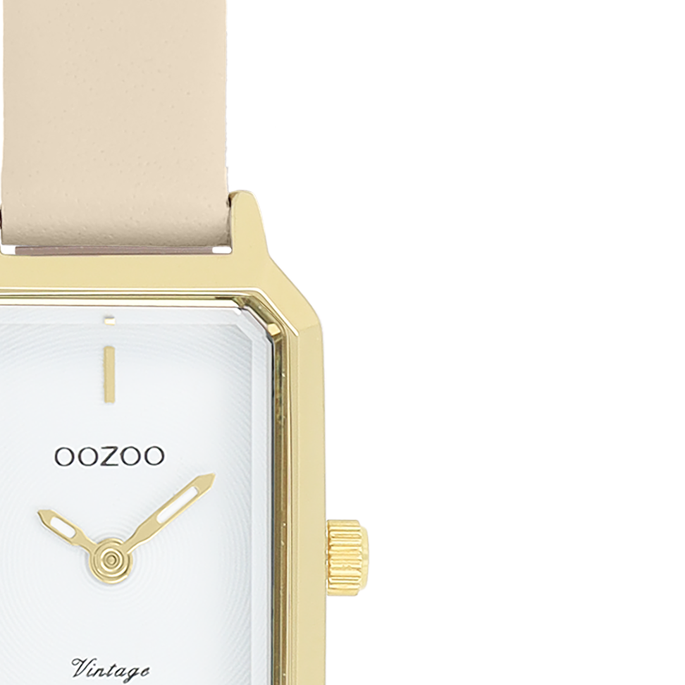 The classic look stays key in this trendy series and therefore, this rectangular OOZOO vintage design with a playful wink is the season must-have! This ladies watch is the perfect combination of fashion and comfort with its 22x19 mm gold coloured metal watch case and white circle pattern dial. The sand leather strap makes this watch a trendy accessory, which you can wear every day. The dial has gold coloured stripes digits and matching hands. The C20450 adds the sparkle to your outfit. The mineral glass lays in a 9,5 mm slim metal watch case with IP-plating. This design has a stainless steel backplate and is nickel safe. This watch has a 2ATM Japanese movement and is covered by a 2 year warranty (see section 3 of our Refund, shipping & warranty policy).