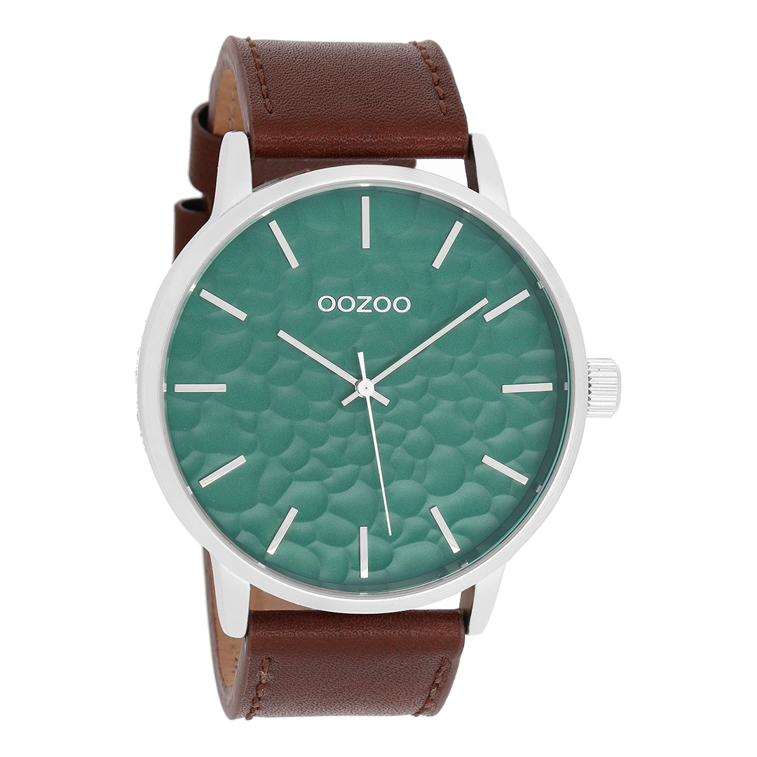 Stand out with this beautiful round gents design from the trendy OOZOO Timepieces collection. The C9441 has a brown leather strap and 48 mm silver coloured metal watch case. You are making quite the fashion statement with this green printed dial, silver coloured stripes digits and matching hands. This essential watch for your wardrobe has a mineral glass, stainless steel backplate and is nickel safe. This watch has a 2 Japanese movement and is covered by a 2 year warranty (see section 3 of our Refund, shipping & warranty policy).